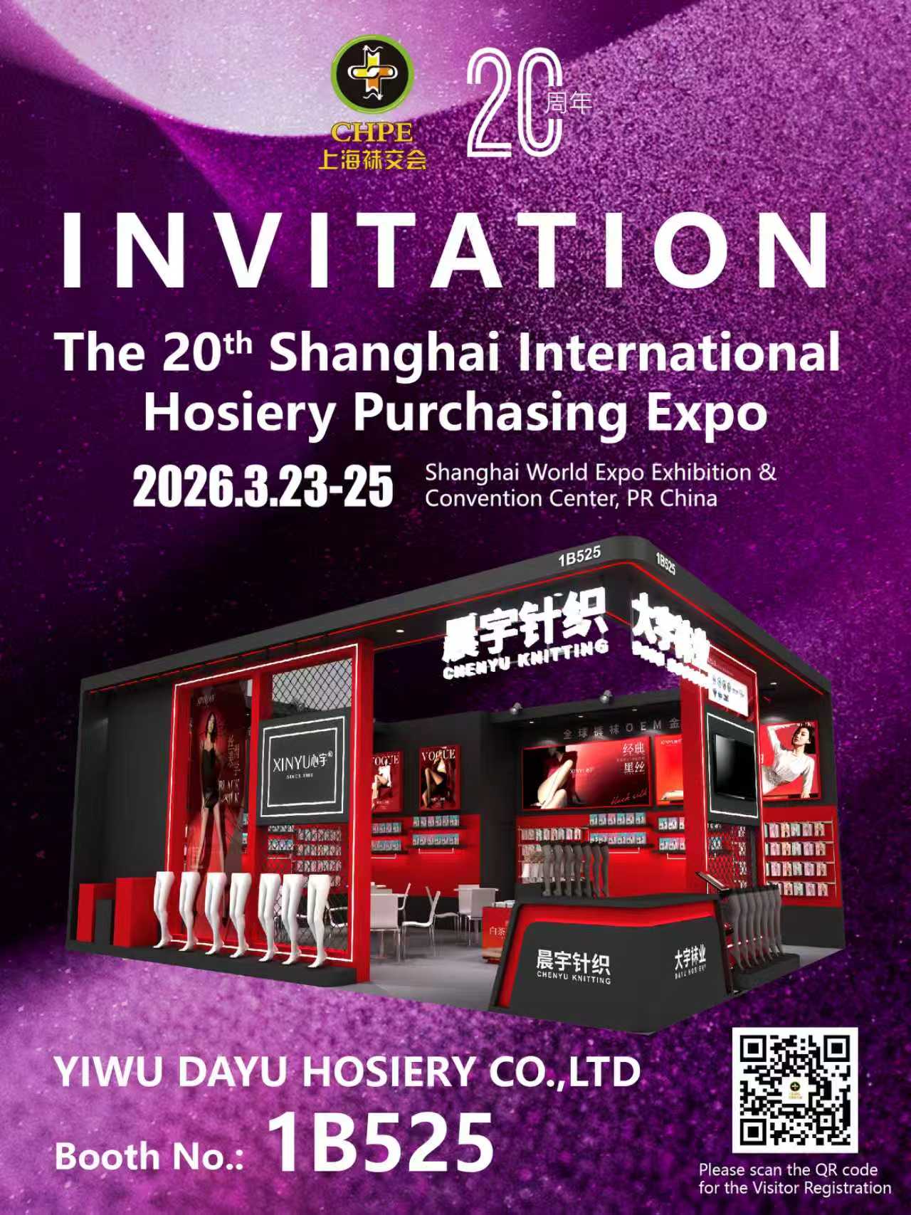Zhejiang Chenyu Knitting Co., Ltd. Le invita cordialmente a visitar nuestro stand. Presentaremos nuestra gama completa de calcetines y soluciones profesionales OEM/ODM. Bienvenido a visitarnos.